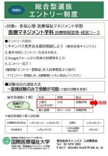 医療マネジメント学科 総合型選抜 エントリー制度の実施(募集終了しました)